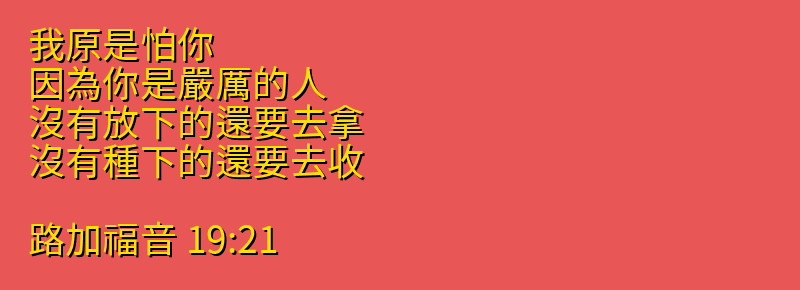 我原是怕你、因為你是嚴厲的人.沒有放下的還要去拿、沒有種下的還要去收。