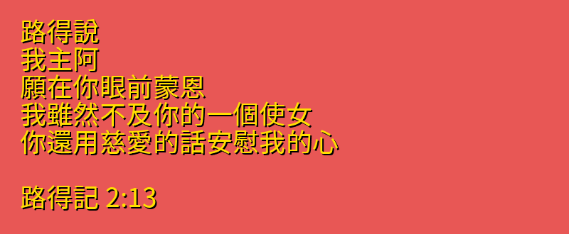 路得說、我主阿、願在你眼前蒙恩、我雖然不及你的一個使女、你還用慈愛的話安慰我的心。