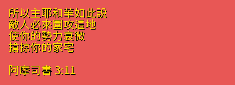 • 3:11 所以主耶和華如此說、敵人必來圍攻這地、使你的勢力衰微、搶掠你的家宅。
