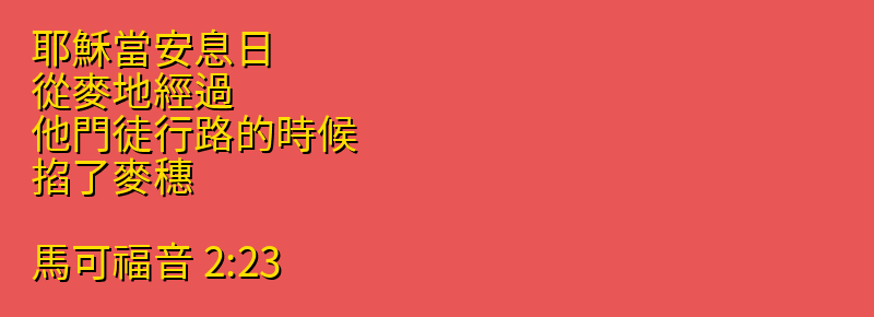 耶穌當安息日、從麥地經過.他門徒行路的時候、掐了麥穗。