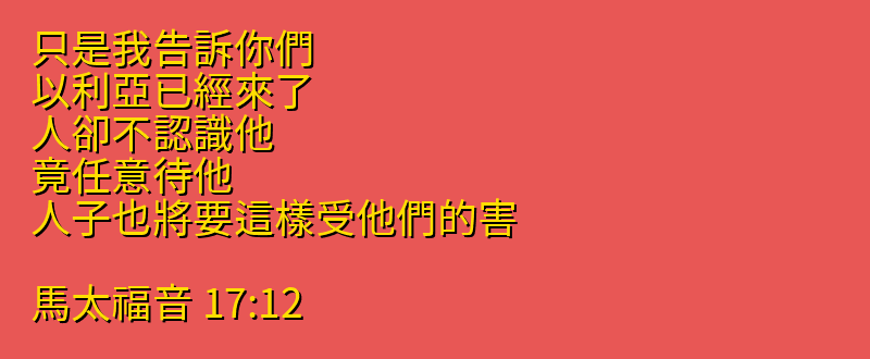 站外尋找馬太福音17章12節更多資料: