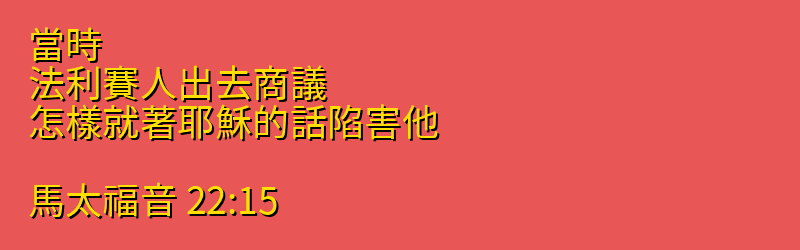 • 22:15 當時、法利賽人出去商議、怎樣就著耶穌的話陷害他。
