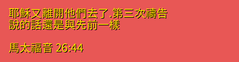 耶穌又離開他們去了.第三次禱告、說的話還是與先前一樣。