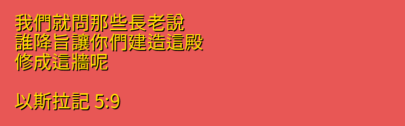我們就問那些長老說、誰降旨讓你們建造這殿、修成這牆呢。