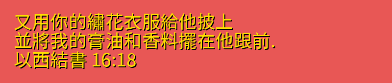 又用你的繡花衣服給他披上、並將我的膏油和香料擺在他跟前.