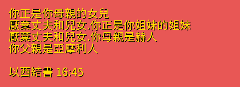 你正是你母親的女兒、厭棄丈夫和兒女.你正是你姐妹的姐妹、厭棄丈夫和兒女.你母親是赫人、你父親是亞摩利人。
