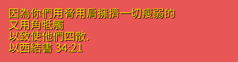 因為你們用脅用肩擁擠一切瘦弱的、又用角牴觸、以致使他們四散.