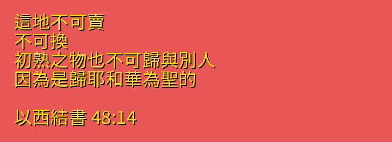 這地不可賣、不可換、初熟之物也不可歸與別人、因為是歸耶和華為聖的。