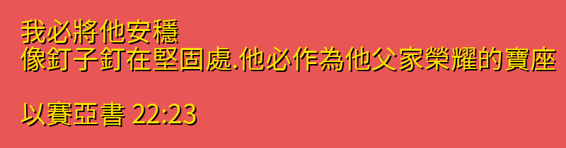 我必將他安穩、像釘子釘在堅固處.他必作為他父家榮耀的寶座。