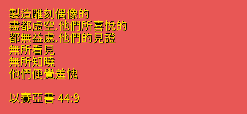 製造雕刻偶像的、盡都虛空.他們所喜悅的、都無益處.他們的見證、無所看見、無所知曉、他們便覺羞愧。