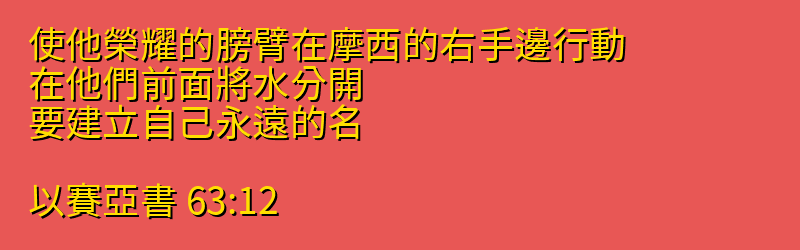 使他榮耀的膀臂在摩西的右手邊行動、在他們前面將水分開、要建立自己永遠的名、