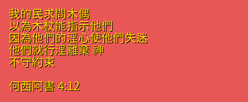 我的民求問木偶、以為木杖能指示他們、因為他們的淫心使他們失迷、他們就行淫離棄 神、不守約束。