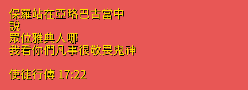 保羅站在亞略巴古當中、說、眾位雅典人哪、我看你們凡事很敬畏鬼神。