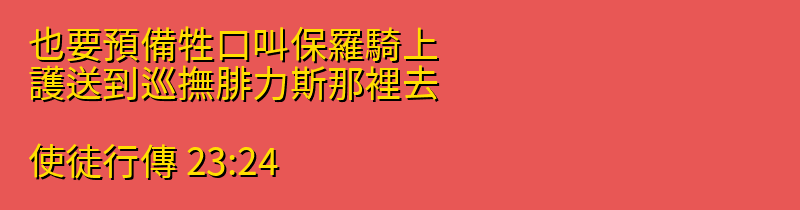 也要預備牲口叫保羅騎上、護送到巡撫腓力斯那裡去。