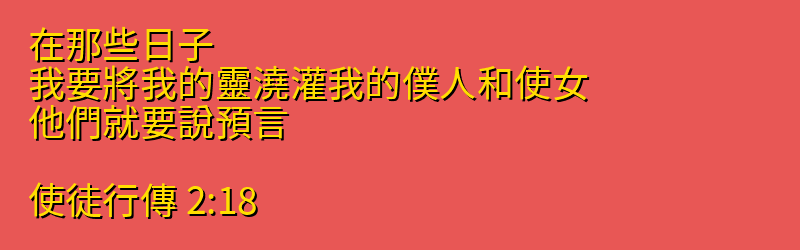 在那些日子、我要將我的靈澆灌我的僕人和使女、他們就要說預言。