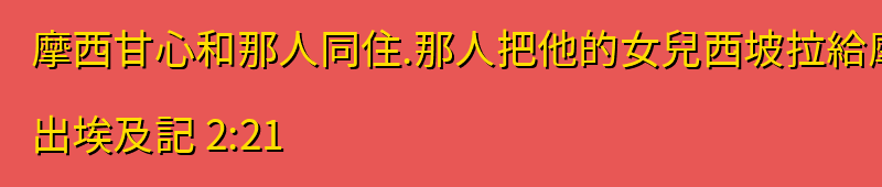 摩西甘心和那人同住.那人把他的女兒西坡拉給摩西為妻。