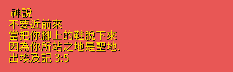 神說、不要近前來、當把你腳上的鞋脫下來、因為你所站之地是聖地.