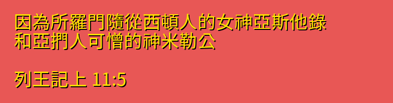 因為所羅門隨從西頓人的女神亞斯他錄、和亞捫人可憎的神米勒公。