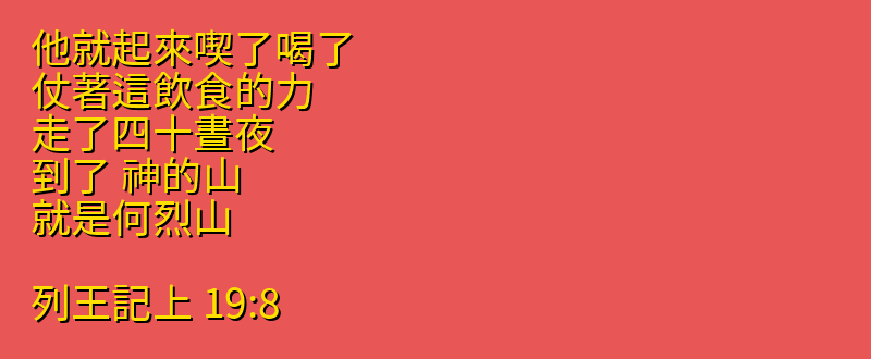 他就起來喫了喝了、仗著這飲食的力、走了四十晝夜、到了 神的山、就是何烈山。