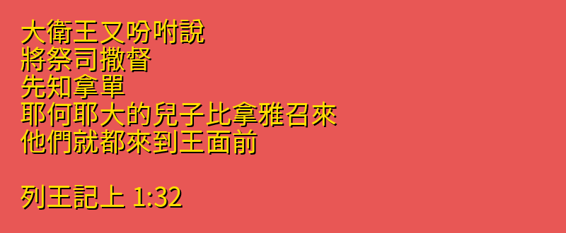 站外尋找列王記上1章32節更多資料: