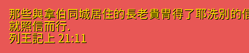 那些與拿伯同城居住的長老貴冑得了耶洗別的信、就照信而行.