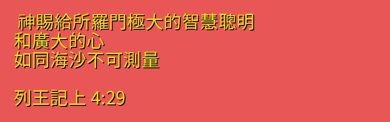 神賜給所羅門極大的智慧聰明、和廣大的心、如同海沙不可測量。