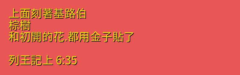 上面刻著基路伯、棕樹、和初開的花.都用金子貼了。