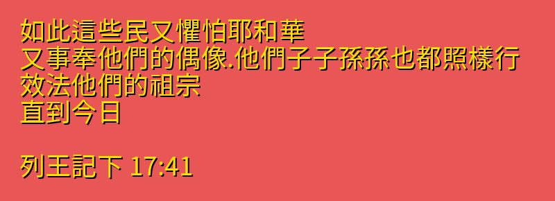 您對於列王記下聖經「如此這些民又懼怕耶和華、又事奉他們的偶像.他們子子孫孫也都照樣行、效法他們的祖宗、直到今日。」有何comment?