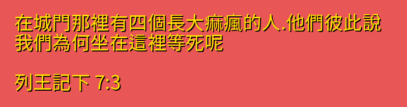 在城門那裡有四個長大痲瘋的人.他們彼此說、我們為何坐在這裡等死呢。