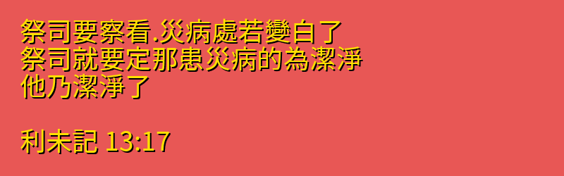 祭司要察看.災病處若變白了、祭司就要定那患災病的為潔淨、他乃潔淨了。