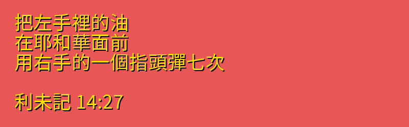 把左手裡的油、在耶和華面前、用右手的一個指頭彈七次。