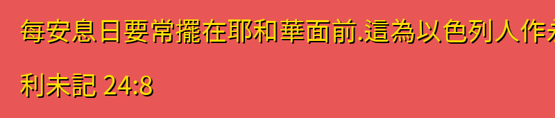 • 24:8 每安息日要常擺在耶和華面前.這為以色列人作永遠的約。