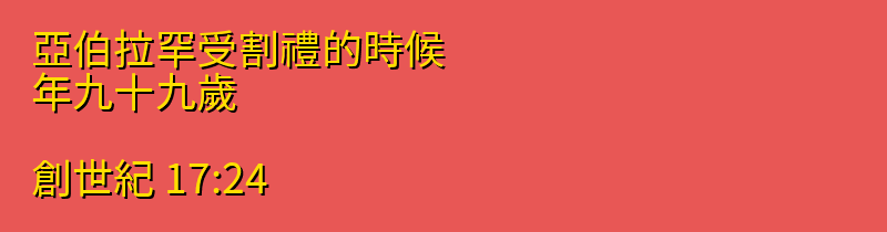 - 17:1 亞伯蘭年九十九歲的時候、耶和華向他顯現、對他說、我是全能的 神、你當在我面前作完全人。