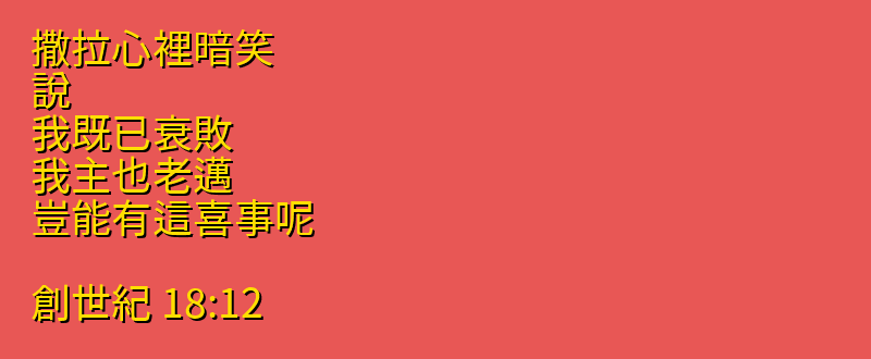 撒拉心裡暗笑、說、我既已衰敗、我主也老邁、豈能有這喜事呢。