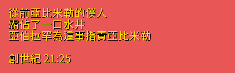 從前亞比米勒的僕人、霸佔了一口水井、亞伯拉罕為這事指責亞比米勒。