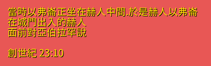 當時以弗崙正坐在赫人中間.於是赫人以弗崙、在城門出入的赫人、面前對亞伯拉罕說、