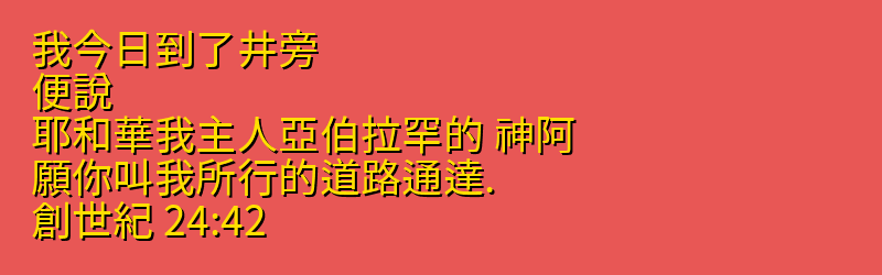 我今日到了井旁、便說、耶和華我主人亞伯拉罕的 神阿、願你叫我所行的道路通達.