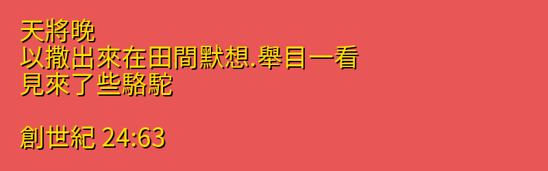 天將晚、以撒出來在田間默想.舉目一看、見來了些駱駝。