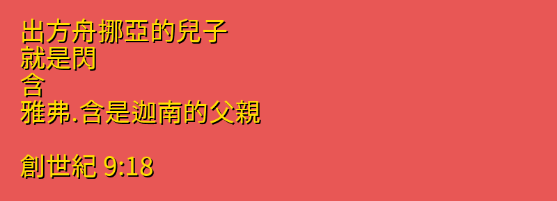 出方舟挪亞的兒子、就是閃、含、雅弗.含是迦南的父親。