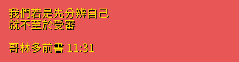 • 11:31 我們若是先分辨自己、就不至於受審。