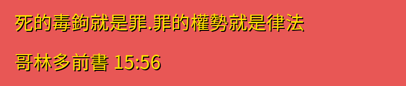 今日分享的中文聖經:「死的毒鉤就是罪.罪的權勢就是律法。」來自聖經「哥林多前書」第「15章56節」,你可以繼續向下拉看到聖經卷書完整章節。每日中文聖經從神的話語中聆聽神的聲音,引導我們的人生,指導我們人生的方向,讓我們做出正確的選擇,而做出這些正確選擇的原則都在聖經中,所以我們需要讀神的話語,認識他的話語,把神的話語藏在心裡。