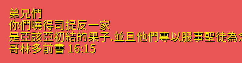 弟兄們、你們曉得司提反一家、是亞該亞初結的果子.並且他們專以服事聖徒為念.