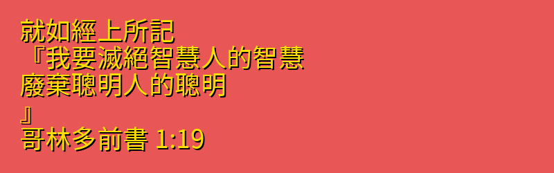 就如經上所記、『我要滅絕智慧人的智慧、廢棄聰明人的聰明。』