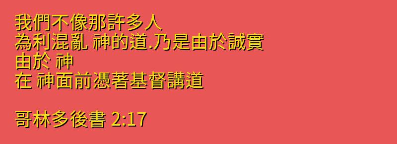 我們不像那許多人、為利混亂 神的道.乃是由於誠實、由於 神、在 神面前憑著基督講道。