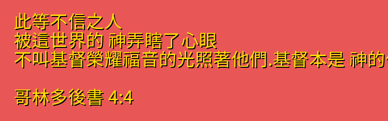 此等不信之人、被這世界的 神弄瞎了心眼、不叫基督榮耀福音的光照著他們.基督本是 神的像。