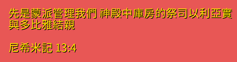 先是蒙派管理我們 神殿中庫房的祭司以利亞實、與多比雅結親、