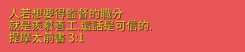 - 3:1 人若想要得監督的職分、就是羨慕善工.這話是可信的.