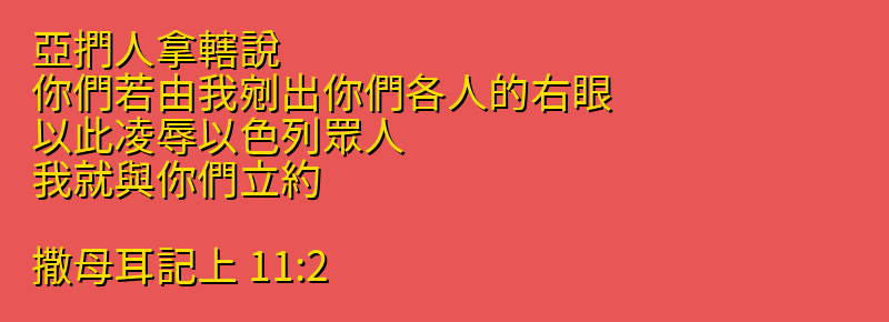 亞捫人拿轄說、你們若由我剜出你們各人的右眼、以此凌辱以色列眾人、我就與你們立約。
