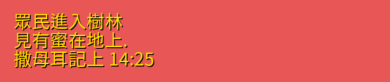 在撒母耳記上14章25節中,描述了以色列人在戰鬥中遵循約拿單的帶領進入樹林,發現地面上有流出來的蜂蜜。這個情景可能暗示著上帝的祝福和供應,因為這些以色列人在戰鬥中疲憊不堪,沒有任何食物來維持體力。然而,他們在樹林中發現了蜜,顯示上帝為他們預備了食物,給予他們力量和能力來戰鬥。這也可以理解為上帝對忠心的人的供應和祝福,即使在困難時刻也不會離開他們,而是提供他們所需的一切。這段經文的教訓是要我們信靠上帝,在困難時刻尋求祂的幫助和引導,知道祂會為我們提供所需的一切。