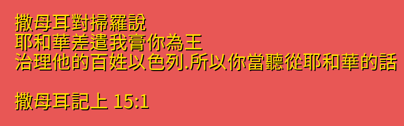 撒母耳對掃羅說、耶和華差遣我膏你為王、治理他的百姓以色列.所以你當聽從耶和華的話。